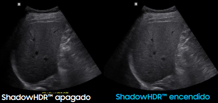 Aplica selectivamente frecuencias altas y bajas para eliminar sombras en regiones como cabeza o columna fetal.