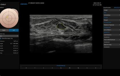 Mejore su apreciación sobre la evaluación del problema basado en un rendimiento de imagen excepcional impulsado por el motor de imagen principal de Samsung, Crystal Architecture™. El motor de imagen premium combina las ventajas del procesamiento de imágenes 2D mejorado y la expresión detallada del procesamiento de la señal de color. El V7 proporcionará una calidad de imagen sobresaliente para un diagnóstico de confianza.
